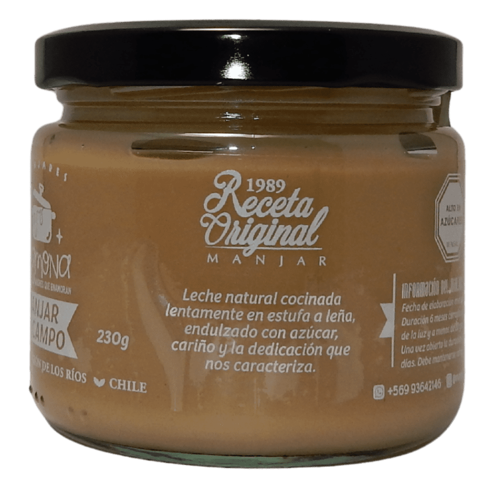 Recibe este producto en 48 hrs.A orillas del Lago Ranco, en la comuna de Futrono, nace Manjares Ramona, un manjar casero que es un legado familiar. Hecho con leche natural de vacas que pastorean libres, la receta antigua se prepara con paciencia en una estufa a leña. Claudia y María Elena, hijas de Ramona, continúan la tradición de su madre. Cada bocado evoca recuerdos de la infancia y las vacaciones en el campo, conectándote con la autenticidad y el sabor del sur.