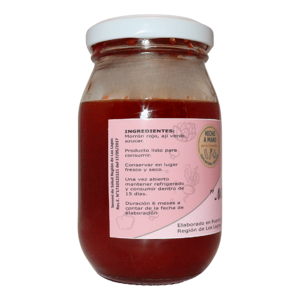 Ingredientes: Morrón rojo, ají verde, azúcar.