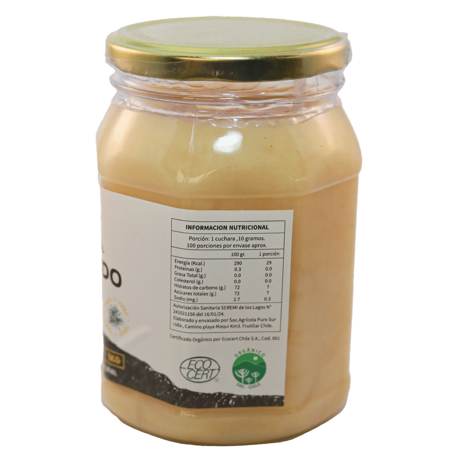 Ingredientes: miel orgánica no filtrada obtenida del néctar de diversas flores que componen el Bosque Nativo del Sur de Chile.