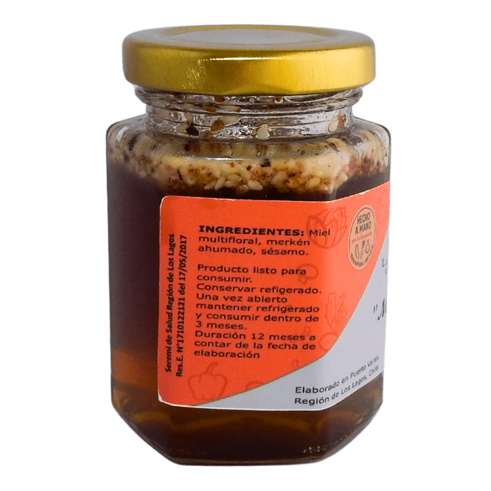 Ingredientes: Miel multifloral, merkén ahumado, sésamo.
